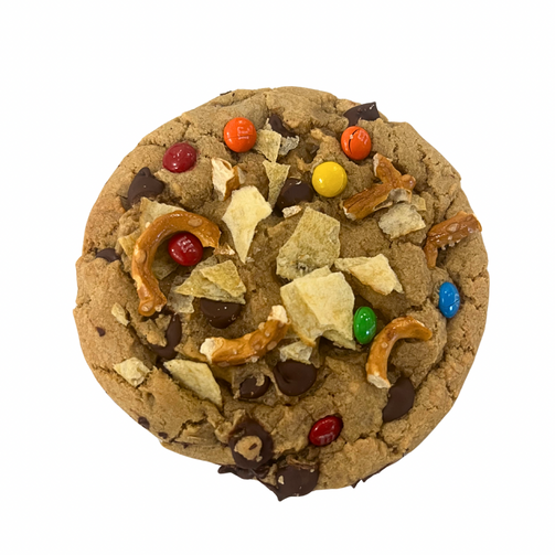 Get ready to elevate your snack game to new highs with Mama's Munchies Chocolate Chip cookie - where every bite is a journey to bliss, no green required! Indulge in the ultimate fusion of sweet meets salty, with crunched potato chips, salted pretzels, mini M&Ms, and chocolate chip baked to perfection! Let Mama's cookies take you on a flavour trip that's sure to leave you feeling buzzed in the best way possible. It's not just a cookie; it's a taste sensation that'll have you saying, 'Munchies never tasted so good’